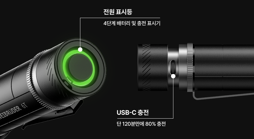 ZB6T는 견고한 알루미늄 하우징과 실용적인 테일 스위치를 갖춘 충전식 손전등으로 깊은 인상을 줍니다.