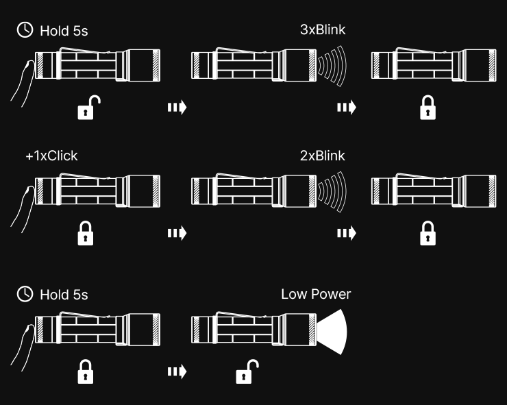 통합된 포커스 스위치를 통해 전원을 켜기 전에 원하는 조명 모드를 미리 선택할 수 있습니다.
